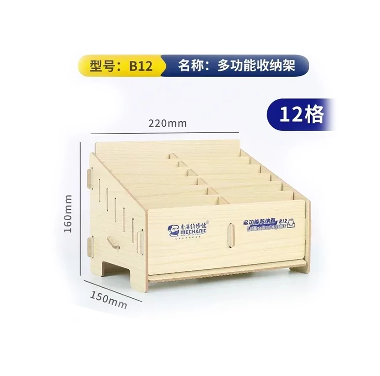 جعبه ابزار و گوشی مکانیک Mechanic B12 یک باکس چندمنظوره با طراحی حرفهای برای نگهداری ابزارهای تعمیرات موبایل و قطعات حساس است. این محصول با کیفیت ساخت بالا و چیدمان منظم، گزینهای عالی برای تعمیرکاران و فروشگاههای تخصصی محسوب میشود.