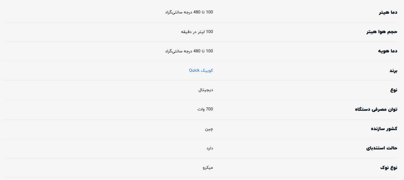 محدوده دما هیتر: 100 تا 480 درجه سانتیگراد