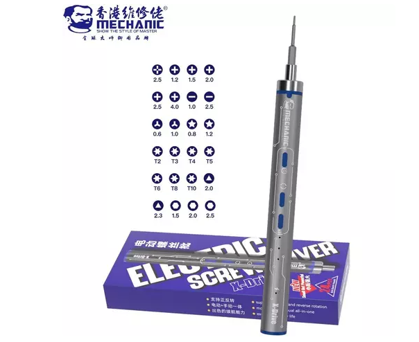 پیچگوشتی شارژی MECHANIC X-DRIVE یک ابزار حرفهای، سبک و دقیق برای تعمیرات موبایل و الکترونیک است که با طراحی مینیمال و بدنه آلومینیومی، عملکردی قابل اعتماد ارائه میدهد.