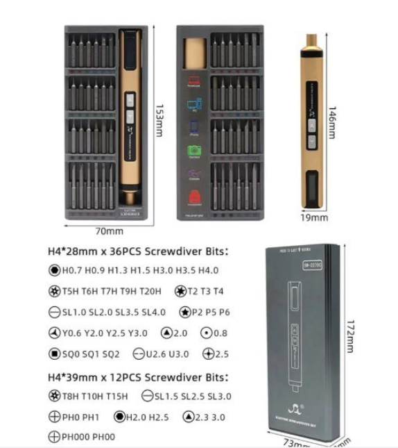 پیچگوشتی شارژی SW-2270C یک ست کامل و حرفهای شامل 50 قطعه است که برای تعمیرات موبایل، لپتاپ، ساعت و تجهیزات الکترونیکی طراحی شده و با طراحی ارگونومیک، باتری قابل شارژ و سریهای متنوع، انتخابی مناسب برای تکنسینهای دقیق محسوب میشود.